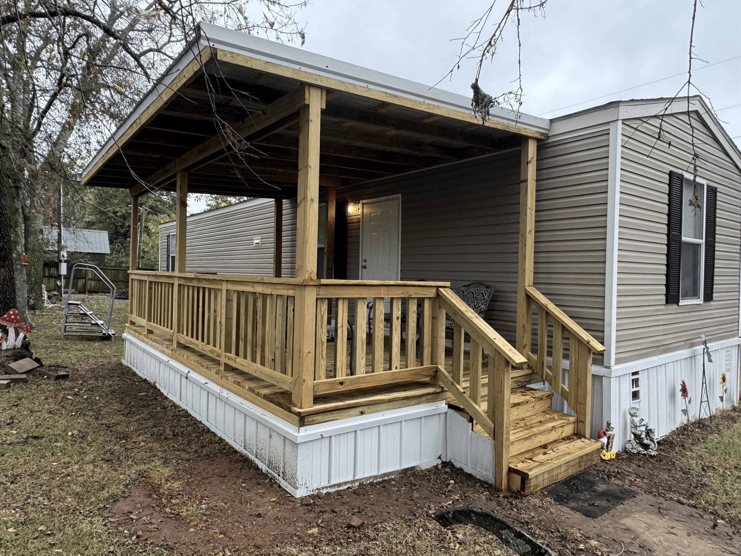 CUSTOM BUILT 10X20 DECK WITH METAL ROOF AND DAUL STAIR’S AND HAND RAILS OUT IN TOPPER’S Oklahoma